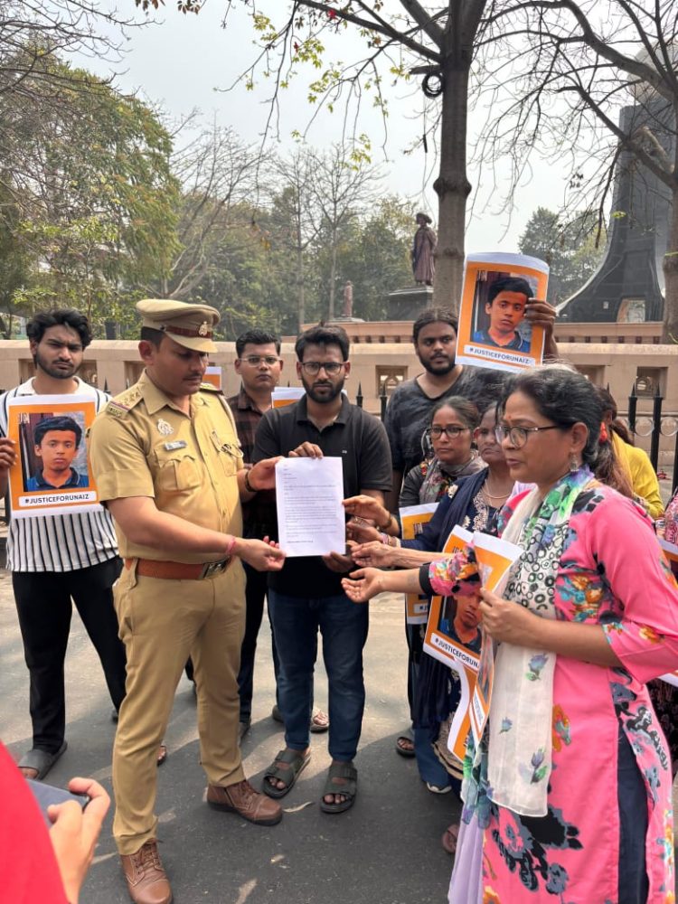Citizens, students, and representatives of several social organisations gathered today at Parivartan Chowk in Lucknow to hold a protest and call for what they described as a fair, transparent, and impartial investigation into the death of 13-year-old Unaiz Khan.