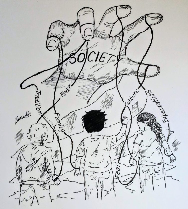 Society, especially in India, unknowingly plays a very key role in shaping our thoughts- how we think and how we make decisions. We try to evolve from it and make our decisions with the help of our own conscience, but that evolution is also unintentionally shaped by the will of society.