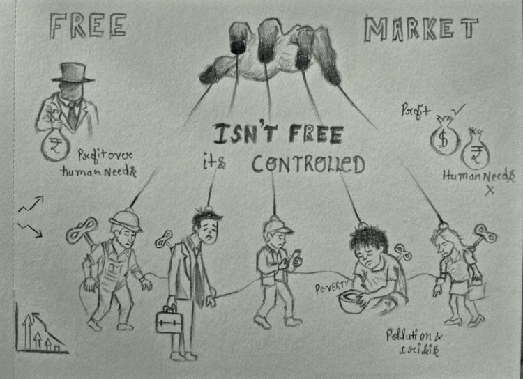 This establishes the first contradiction of the free market: it claims to be based on voluntary exchange, but its very existence depends on coercion. As Karl Marx demonstrated, a labour market requires a class of people who have no option but to sell their labour power. This condition is historically produced, not naturally given. The market does not eliminate power relations. It reorganizes them in a way that appears neutral while preserving structural inequality.