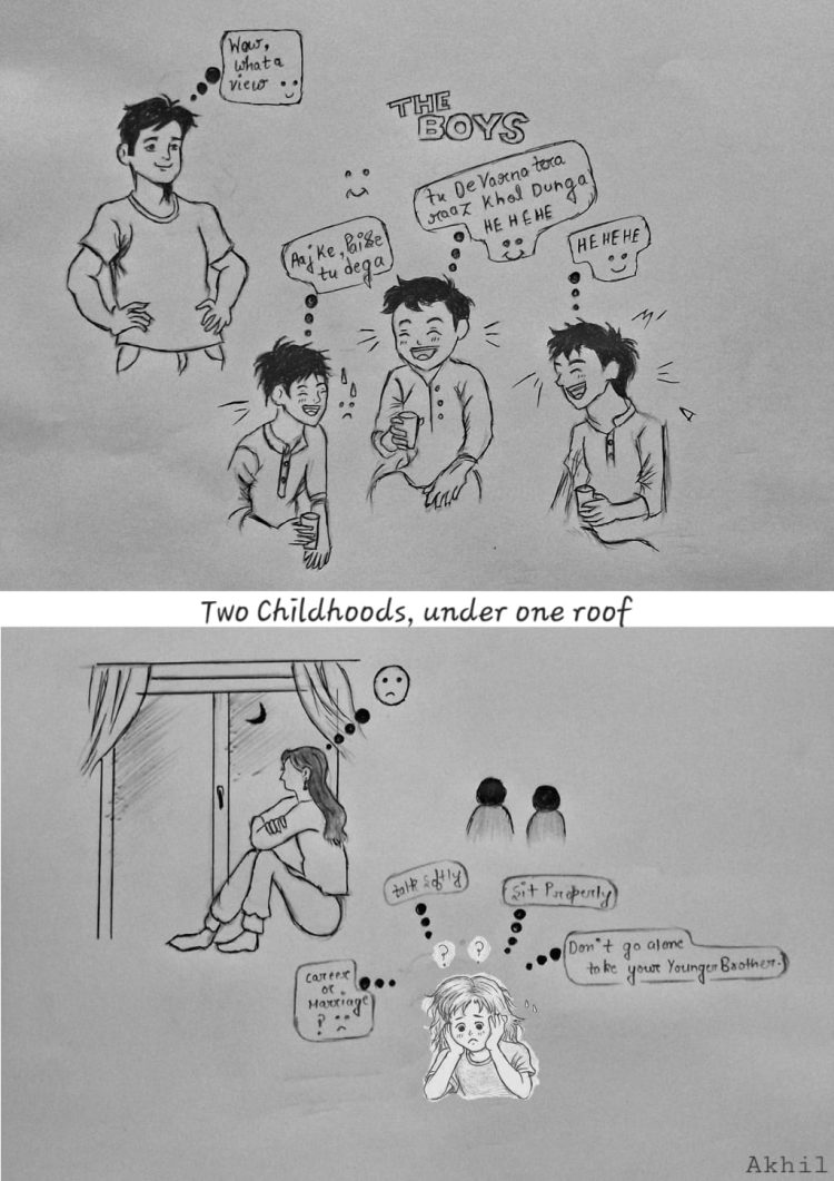 As they grow older, the differences deepen. A son is encouraged to explore, to fail, to try again. His mistakes are seen as part of growth. “He’ll learn,” people say. Risk-taking is framed as bravery, independence and even leadership. But for a daughter, the margin for error is painfully thin. She is told to be careful, to think twice, to not make mistakes,because one wrong step could define her whole being. She doesn’t get the luxury of trial and error; she is expected to get it right in the first shot.
